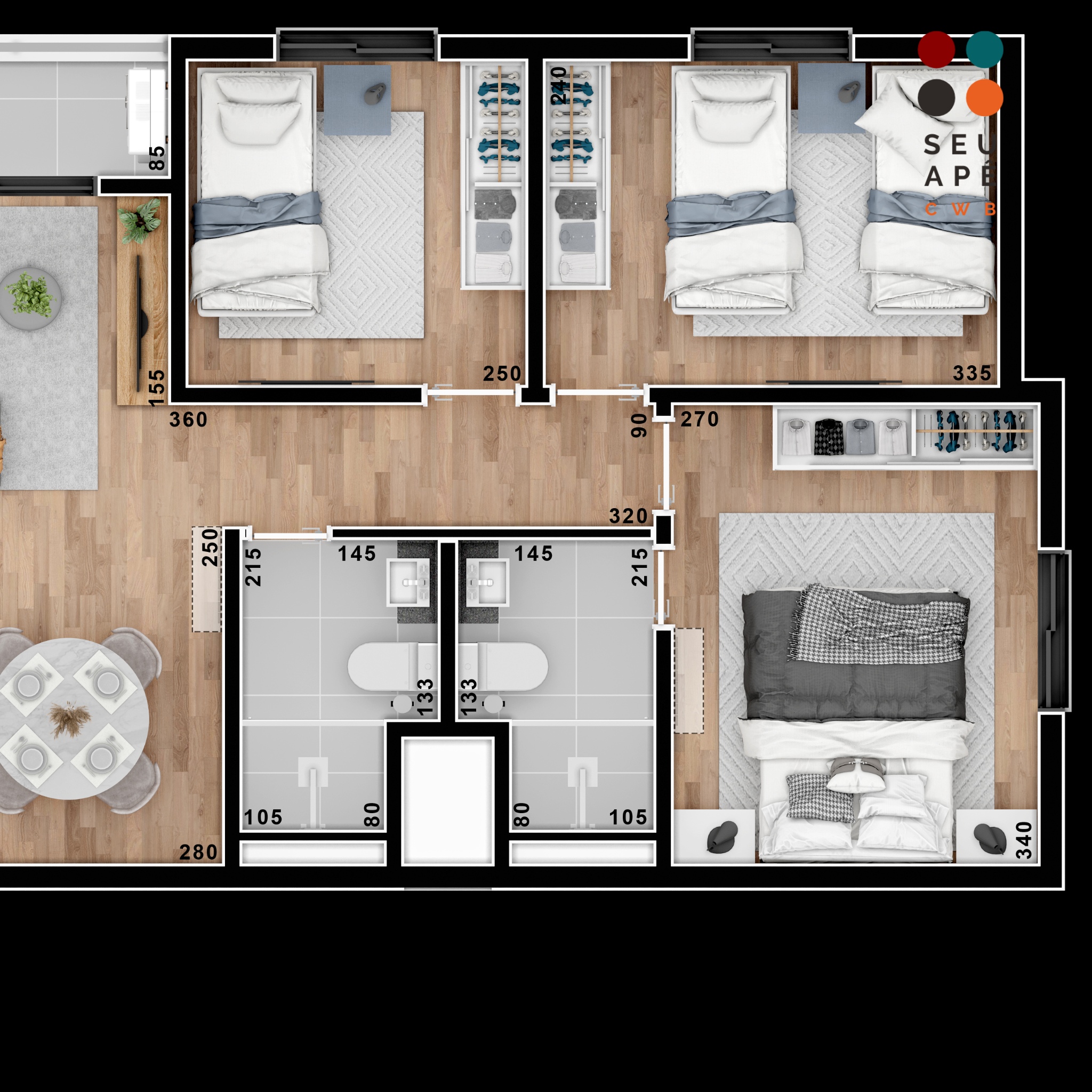 3 Quartos, sendo 1 suite;